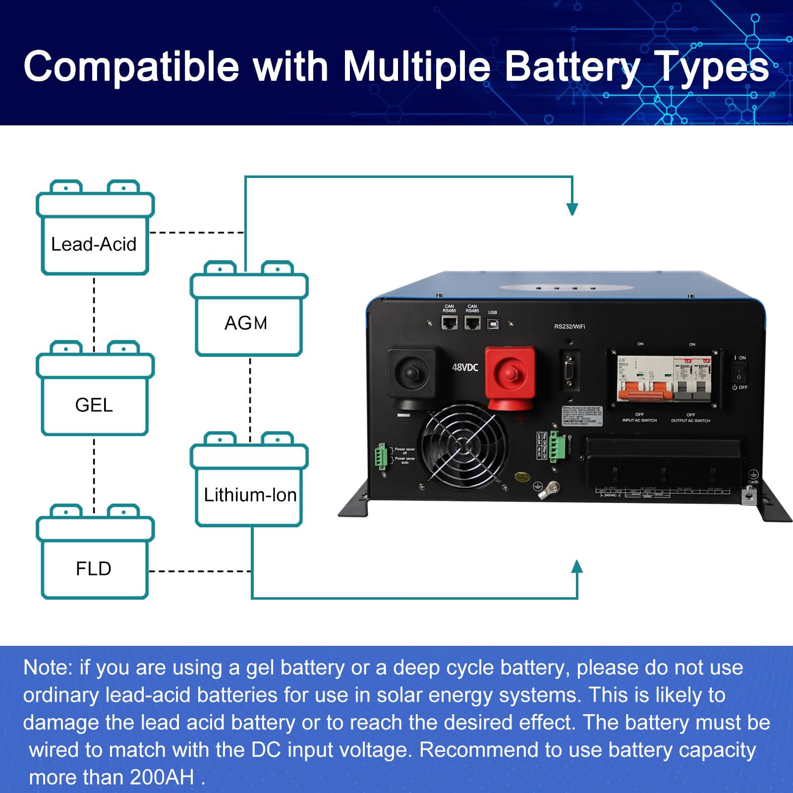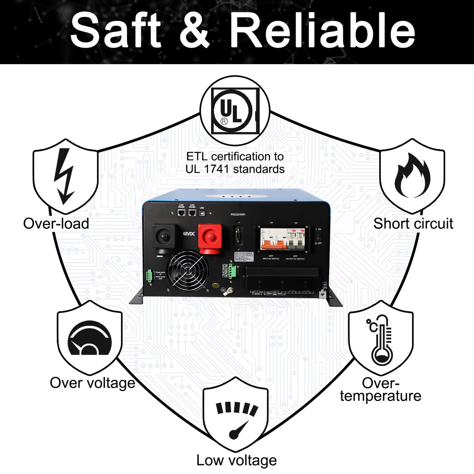 UL1741 Solar Off Grid Inverter 110/220Vac Low Frequency DC 48V AC Input 240V AC Output 120V/240V Split Phase Pure Sine Wave Power Converter with MPPT Charger Controller