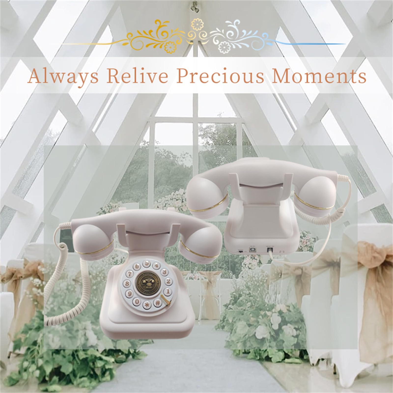 Audio Guest Book Phone Audio GuestBook for Weddings Record Customized Audio Messages Guest Book Classic Retro Style for Parties Birthdays Rentals Confessions Special Occasions (White)