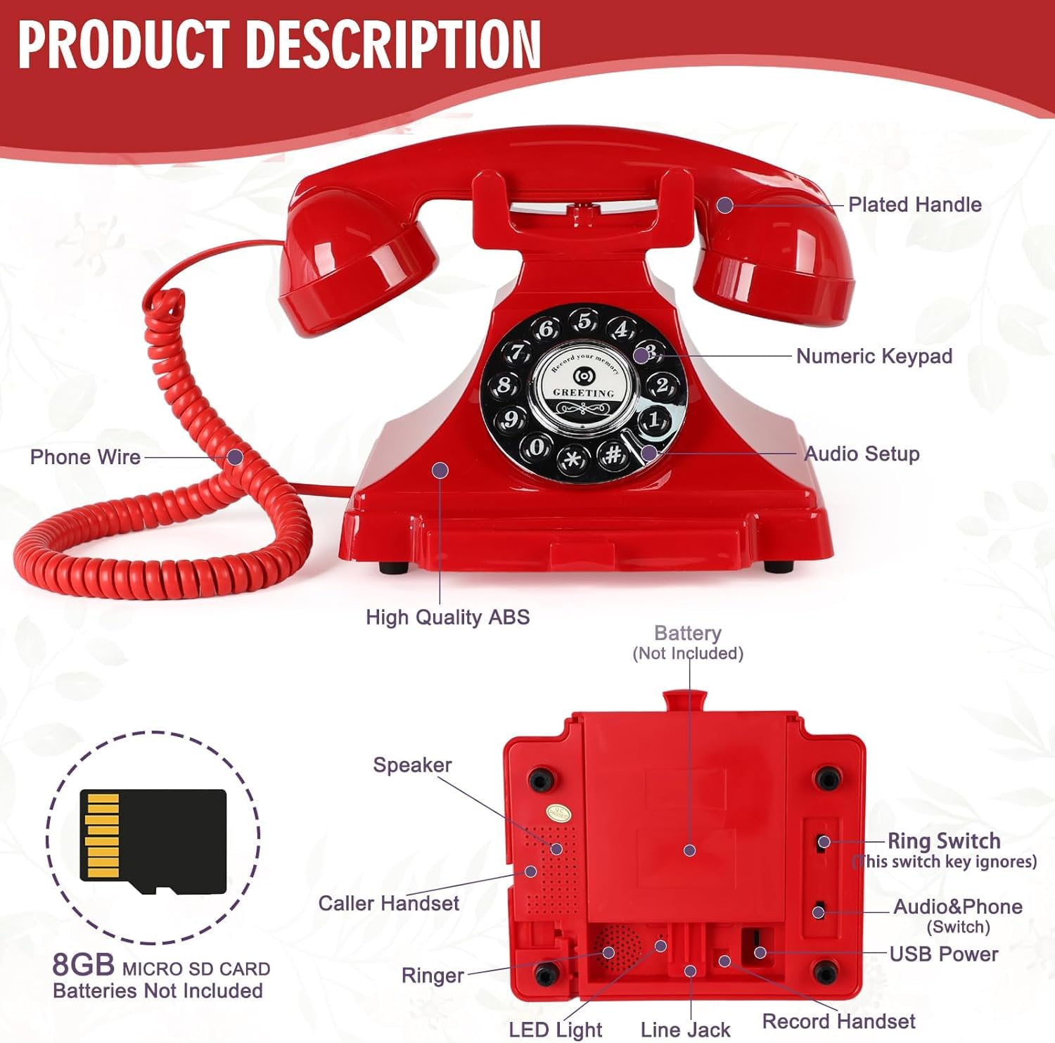 Audio Guest Book Wedding Phone - Classic Style Telephone Guest Book - Record Customized Audio Messages Guest Book with Ease for Weddings, Parties, Birthdays and Special Occasions