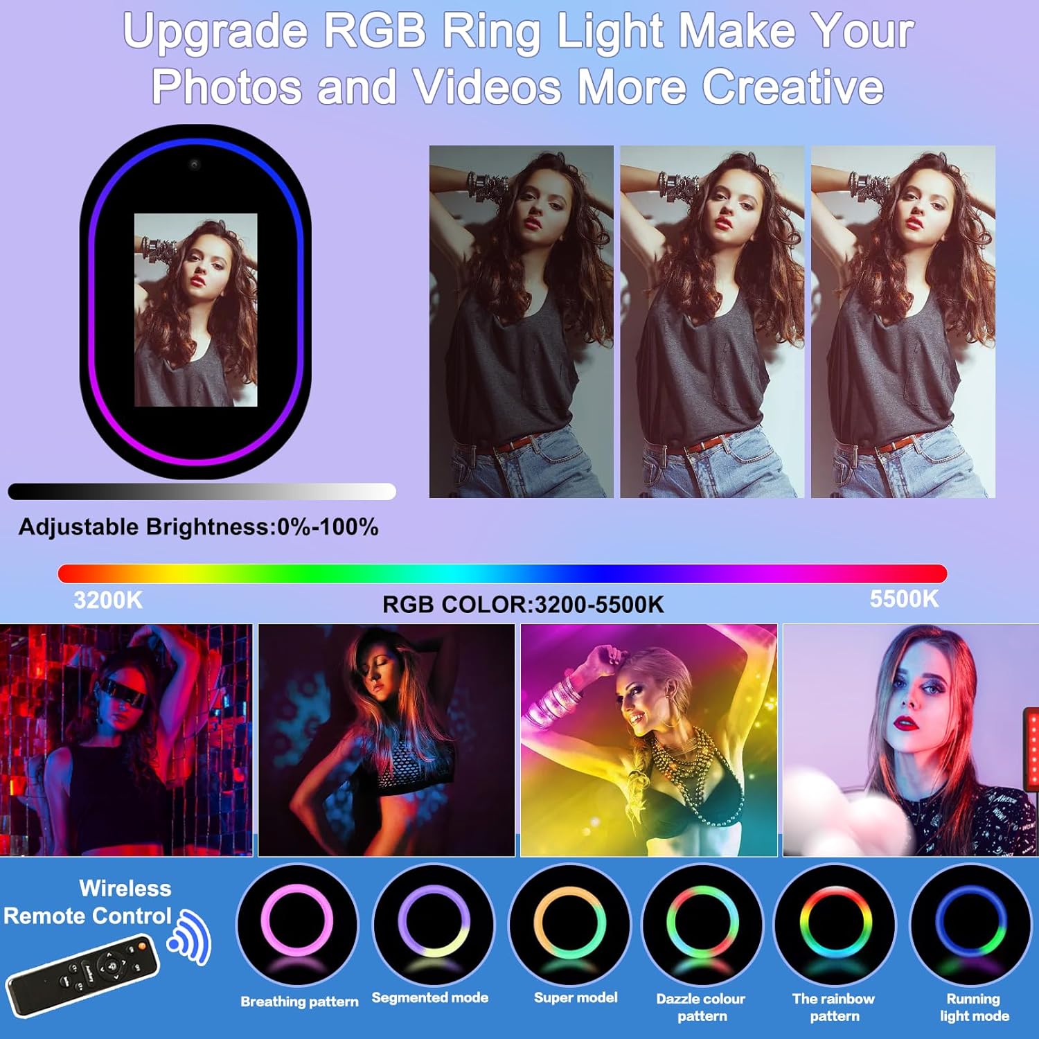 ROOMEDAL 13.3 In Portable Touch Mirror Photo Booth Built-in Mini PC & Camera Photo Booth with Round Ring Light and Trolley Flight Case for Events Wedding Rental Business